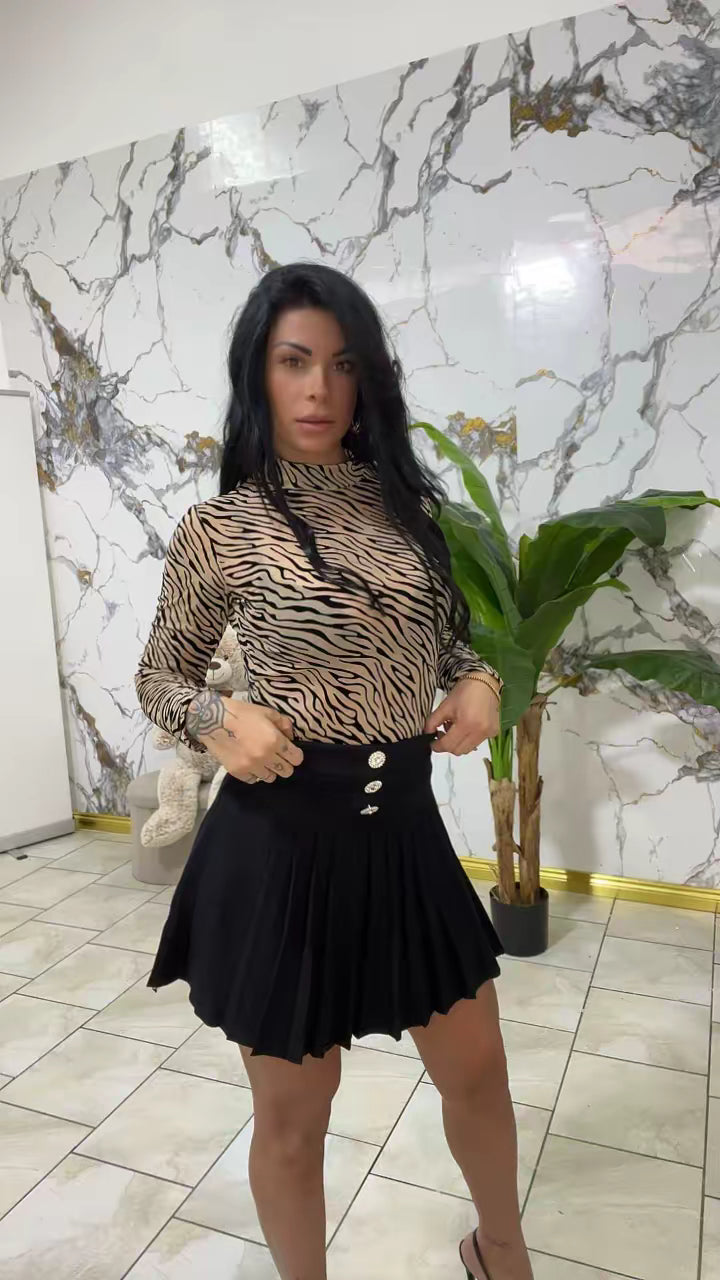 Questa gonna plissé presenta sei bottoni per una vestibilità perfetta e un look elegante. La...