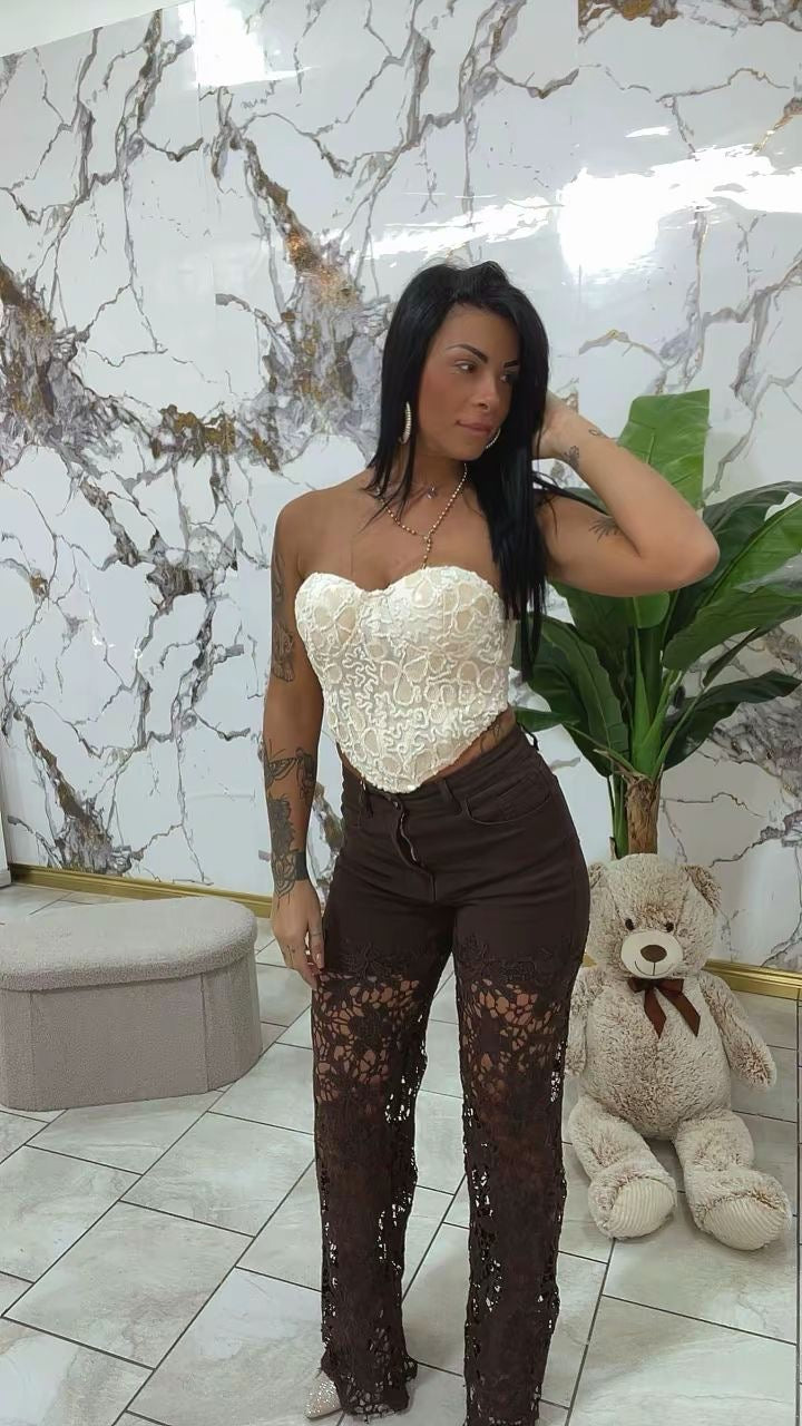Questo elegante top steccato con ricami in paillettes è perfetto per chi vuole essere notato....