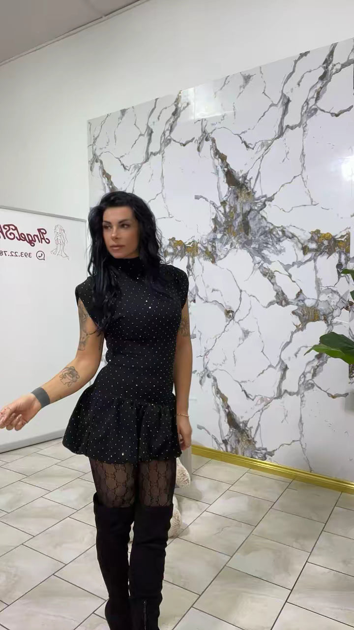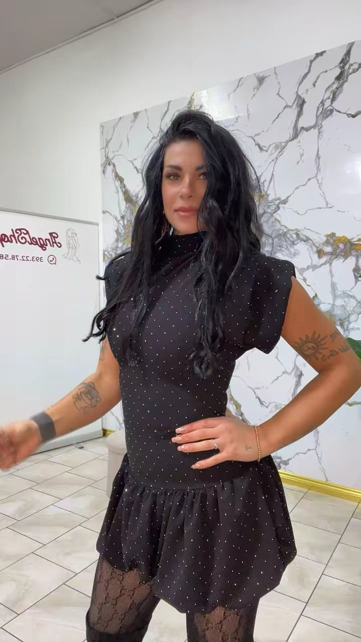 Questo elegante abito scintillante è realizzato in morbido poliestere elastico. La sua brillantezza attira l'attenzione e lo rende perfetto per qualsiasi occasione. Comodo e di alta qualità, ti farà sentire sicura e alla moda.