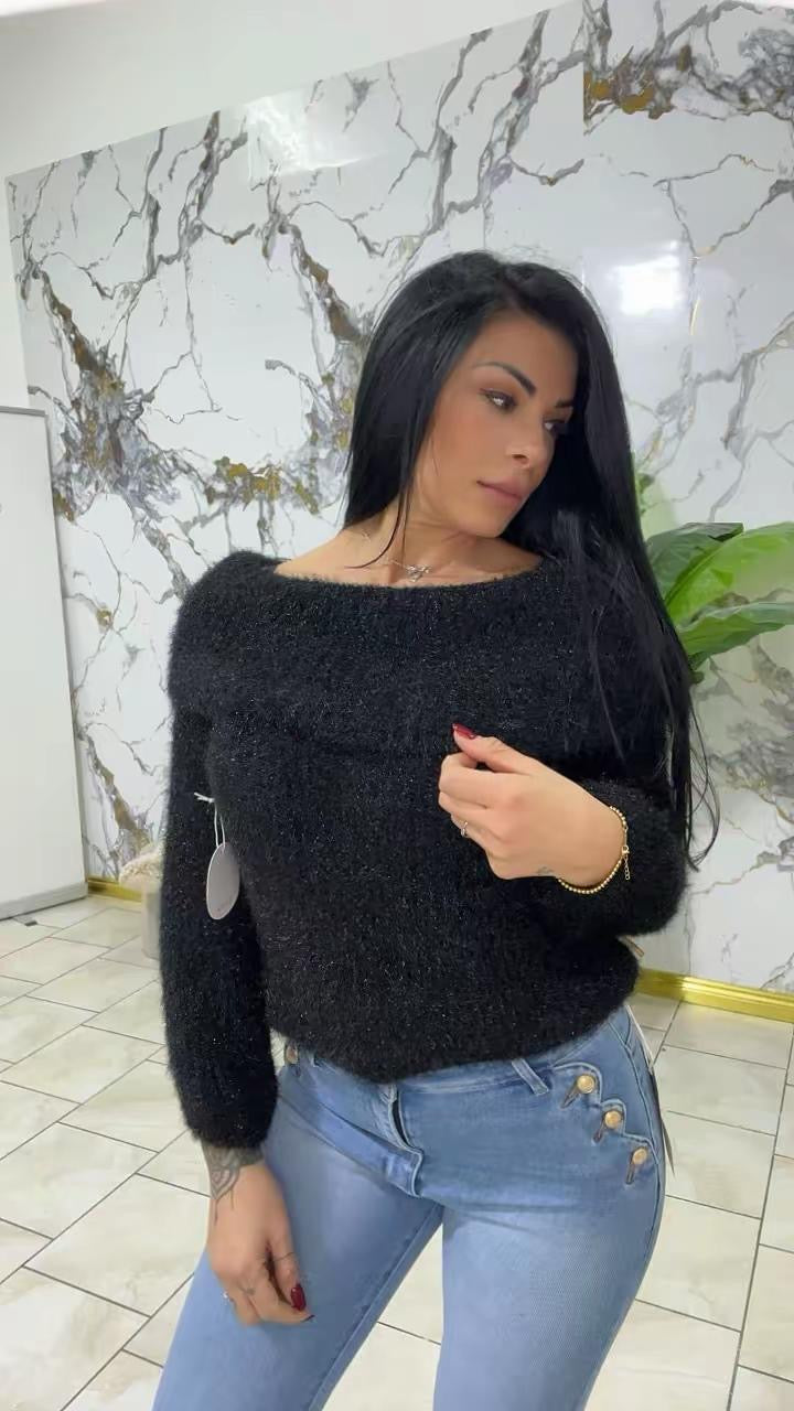 Il maglione scollo barca è realizzato in lana con pelo lungo, offrendo un'ottima regolazione della temperatura corporea grazie alle proprietà isolanti della lana. Questo materiale naturale garantisce comfort e morbidezza al tatto, rendendolo adatto per l'uso quotidiano durante le stagioni fredde.