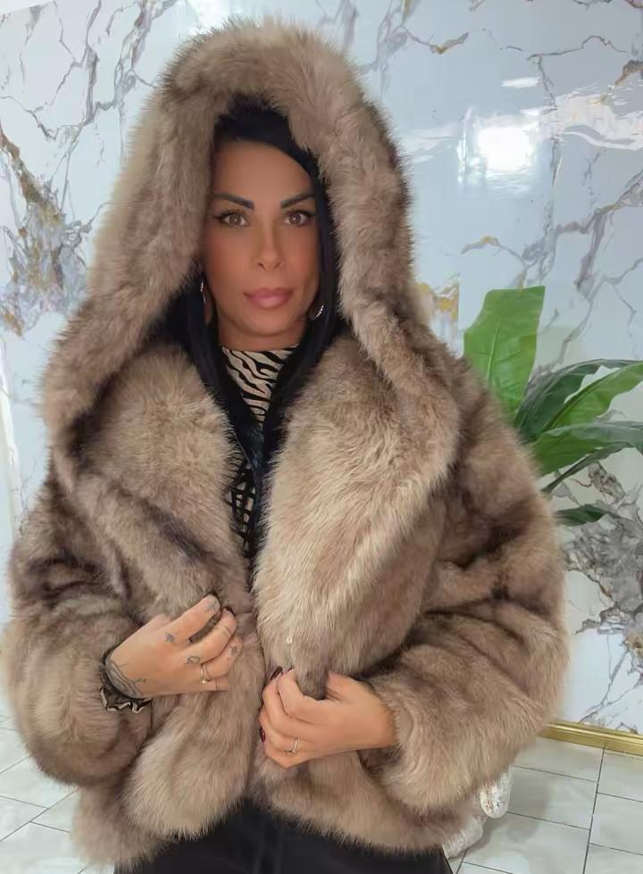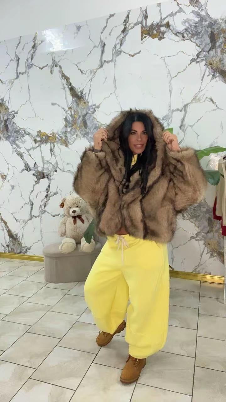 Ciao Lussuosa pelliccia honey con cappuccio ecologico è un'aggiunta elegante ed eco-friendly al tuo guardaroba. Realizzata con materiali sostenibili, questa pelliccia ti terrà al caldo e ti farà sentire bene per la tua scelta responsabile. Aggiungi uno stile chic e consapevole alla tua collezione di inverno.eco pelliccia con cappuccio