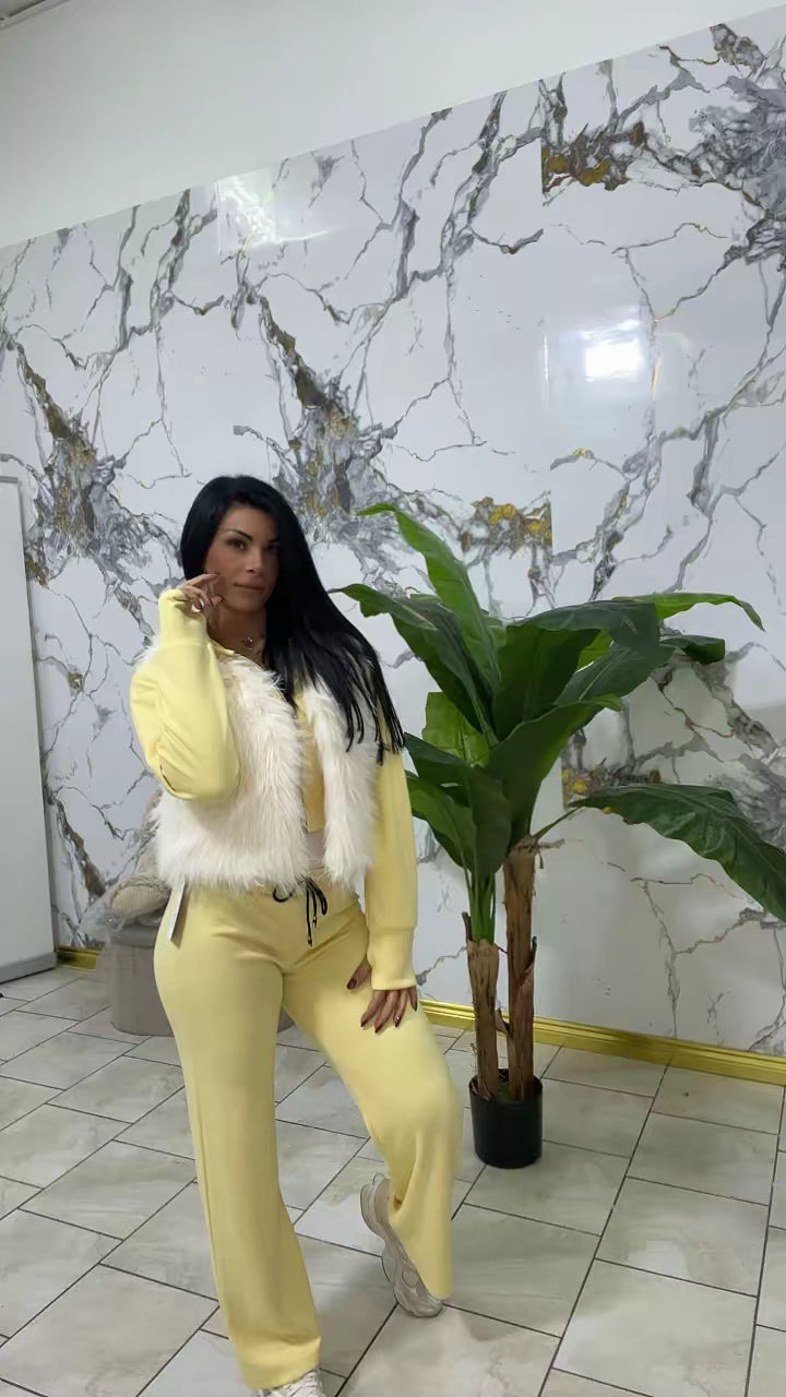 La Tuta Sweet è realizzata in caldo cotone, garantendo comfort e calore. Questo materiale è noto per la sua traspirabilità e resistenza, rendendola ideale per l'uso quotidiano. La composizione in cotone offre una sensazione morbida sulla pelle, contribuendo a un benessere prolungato.